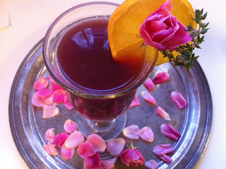 Fill a cocktail glass with ice, a sprig of lemon verbena, a slice of lemon, a tablespoon of orange flower water, 2 tablespoons of the lemon verbena simple syrup, club soda, about 3/4 of the glass and I like to add a shot of gin. Mix well. Now your ready to run a warm bath with a cool blend of essential oils to really cool you off!